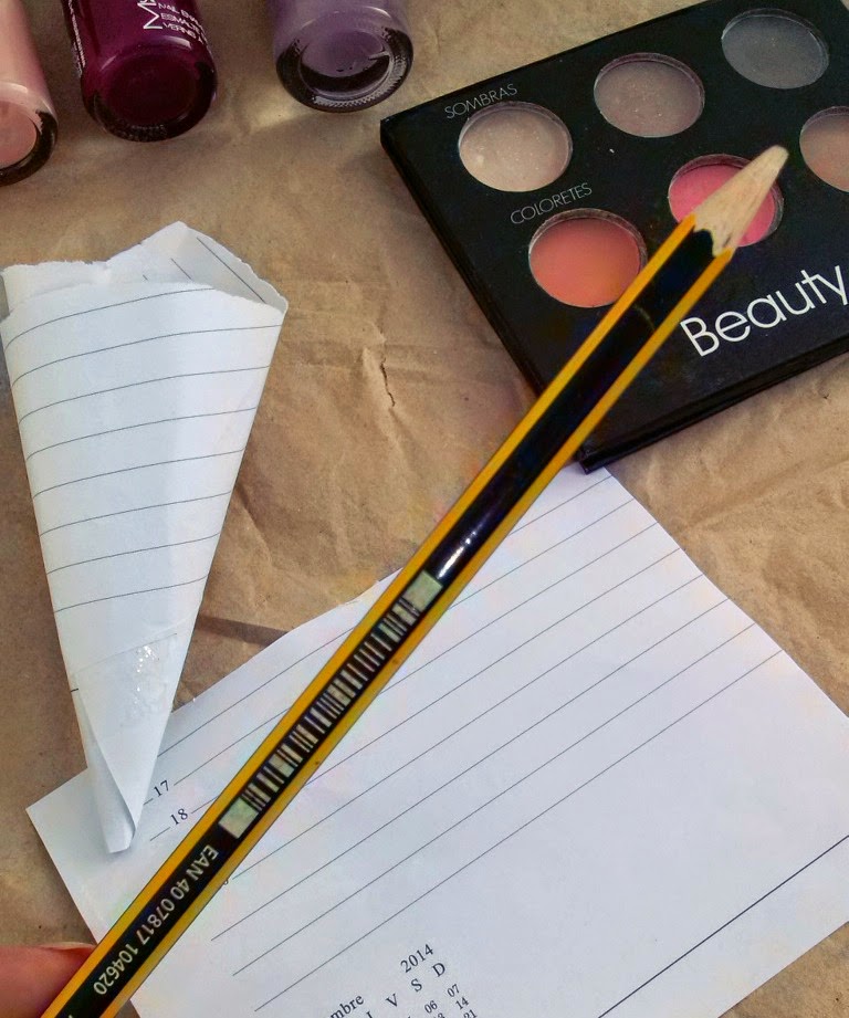 Con el papel haremos un pequeño embudo, y con otro trocito de papel haremos la